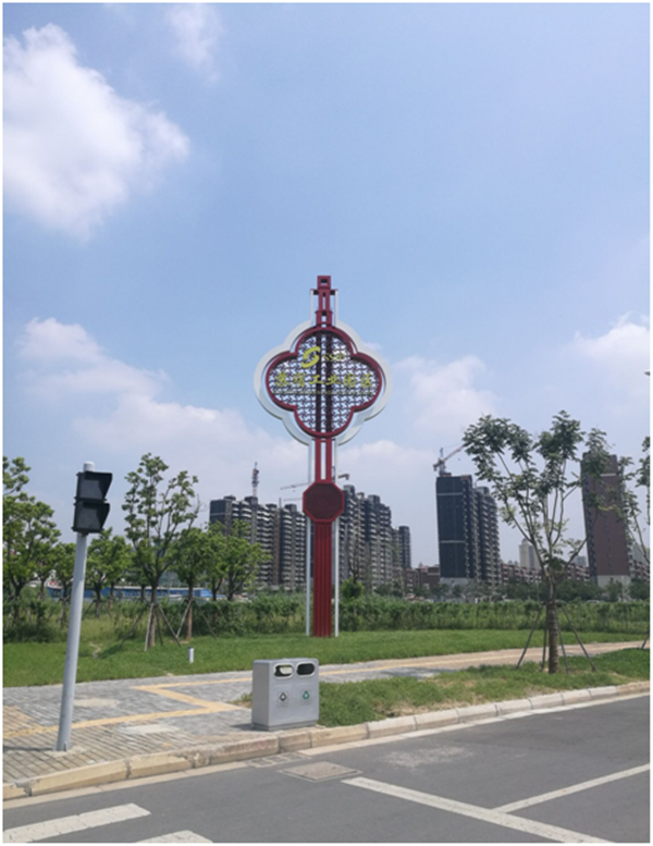 此次設(shè)計,依托園區(qū)已有的綠化景觀雕塑和導向標識進行創(chuàng)作,保持整體風格一致性,增加“蘇式”古典元素,進一步展示了園區(qū)對外的良好形象,為園區(qū)商住區(qū)再添新輝。