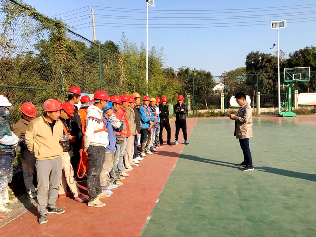 園區(qū)公舍外立面出新工程開展工人安全技術交底