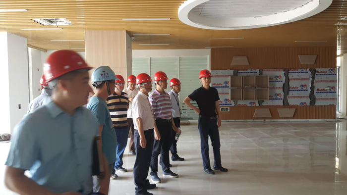 馮書記一行先后查看了項目1#樓報告廳、2#食堂、3#樓行政樓、4-5#樓教學(xué)樓,詳細查看了學(xué)校目前的整體進展和了解了下一步工作計劃。