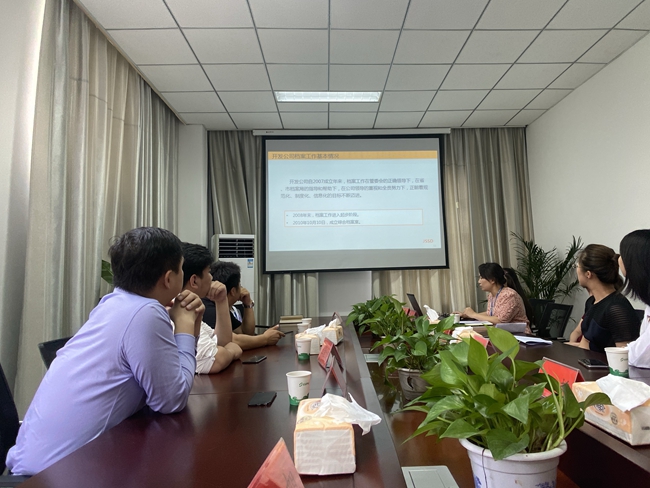 6月19日下午,中電建江蘇激光智造發(fā)展有限公司劉攀總經(jīng)理一行10人來(lái)園區(qū)參觀(guān)學(xué)習(xí)檔案工作。園區(qū)檔案中心和開(kāi)發(fā)公司檔案工作人員接待了劉攀一行。