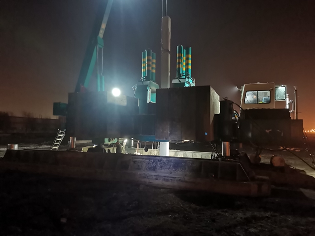 項(xiàng)目于2021年12月正式開工建設(shè),總樁長(zhǎng)約4.7萬米。樁基工程是整個(gè)項(xiàng)目起步的關(guān)鍵工程,項(xiàng)目各參建單位緊密配合,面對(duì)時(shí)間緊、任務(wù)重、氣溫低、管控嚴(yán)等重重困難,施工不分晝夜,雨天依然堅(jiān)持施工,最終確保了進(jìn)度計(jì)劃的實(shí)現(xiàn)。