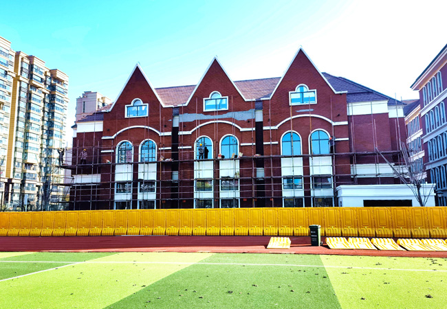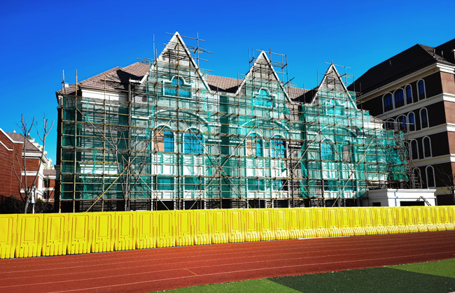 此次立面改造升級,主要面臨著時間緊、作業(yè)條件復雜,加之天氣寒冷及新冠疫情影響,城發(fā)公司要求施工單位保證工程質(zhì)量、施工人員安全和健康,嚴格執(zhí)行施工方案,加快推進項目實施,確保在工期內(nèi)保質(zhì)保量完成任務(wù),為學校師生創(chuàng)造更加良好的學習氛圍。