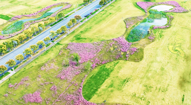 2023年10月1日,蘇宿工業(yè)園區(qū)蘇州公園北側(cè)綠地的粉黛亂子草盛開了,一片片粉色花海如夢似幻,吸引游人前來觀賞,樂享國慶假期。