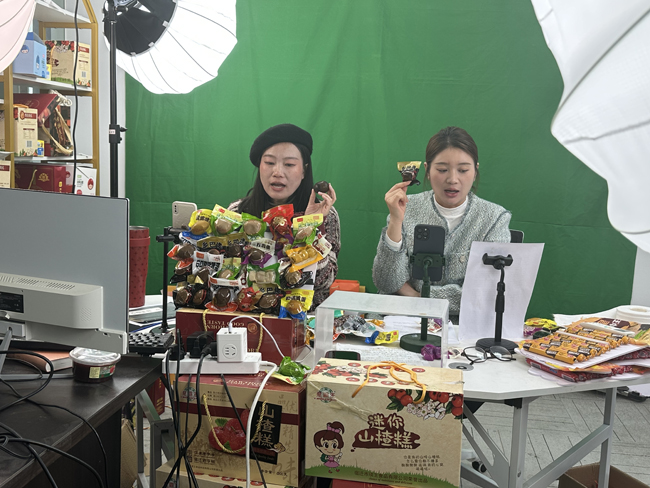 當(dāng)天,電商產(chǎn)業(yè)園內(nèi)的“直播大棚”人氣爆棚。主播們在鏡頭前與消費(fèi)者展開互動(dòng),充滿激情地介紹各類商品,通過生動(dòng)的語言和直觀的展示,將商品的特點(diǎn)和優(yōu)勢傳達(dá)給觀眾,引導(dǎo)他們進(jìn)行購買,主播們還以抽獎(jiǎng)、送禮等方式增加直播的趣味和互動(dòng),吸引更多觀眾的參與。