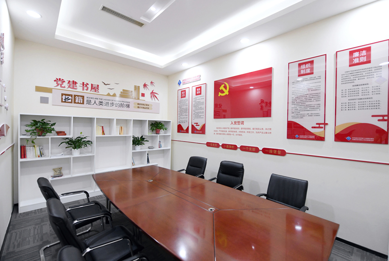 城發(fā)公司黨支部以“規(guī)范、節(jié)儉、實用”為目標,對原會議室進行了科學設(shè)計和規(guī)劃,滿足公司黨員職工學習、會議需要,并配置書架存放多種類黨建書籍、管理書籍以及日常學習活動資料,全方位為黨建工作開展活動創(chuàng)造條件和溫馨的環(huán)境,實現(xiàn)了“一室多用”的效果。