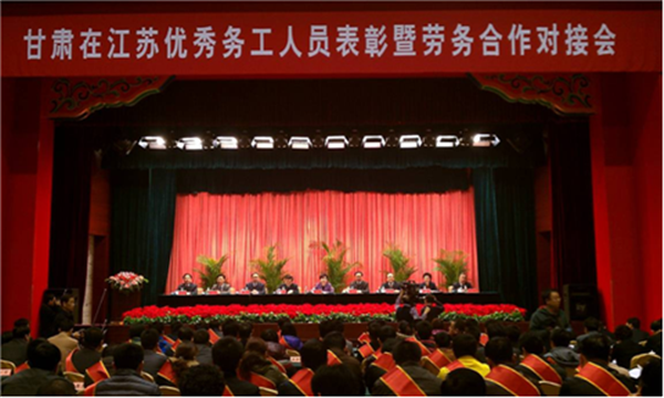 3月16日,甘肅在江蘇優(yōu)秀務(wù)工人員表彰會暨勞務(wù)合作對接會在寧舉行,甘肅省14個城市當天分別與我省13個省轄市及昆山市簽訂了對口勞務(wù)協(xié)作聯(lián)系協(xié)議。會議特別指出,甘蘇兩省勞務(wù)合作日益密切,已探索出服務(wù)管理全程化的“蘇州模式”和培訓就業(yè)一體化的“宿遷模式”,呈現(xiàn)全面合作、互利共贏的良好局面。