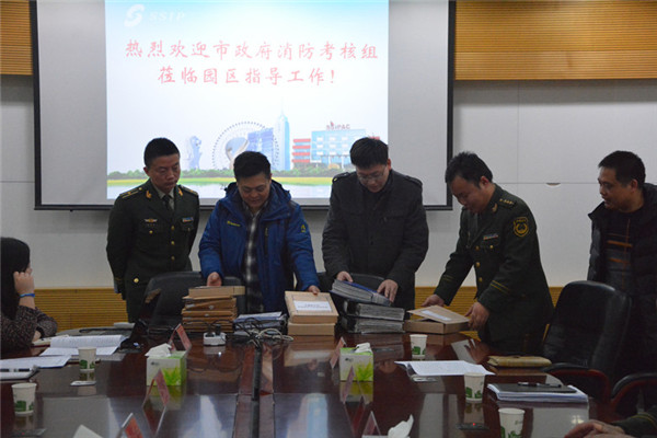 1月29日,市消防支隊副支隊長邱增照帶領(lǐng)市政府消防工作考核組考核園區(qū)消防工作,園區(qū)黨工委委員、管委會副主任戈亮接待了考核組一行。