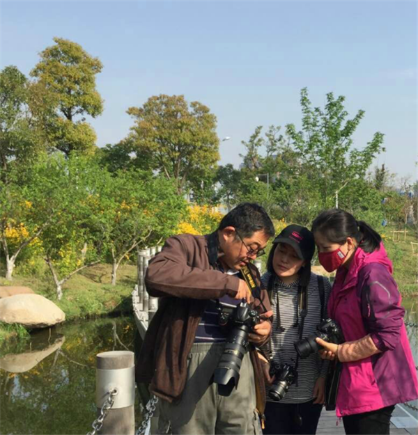 課外,攝影專業(yè)老師指導學員在園區(qū)蘇州公園、碧桂園等地進行攝影采風。